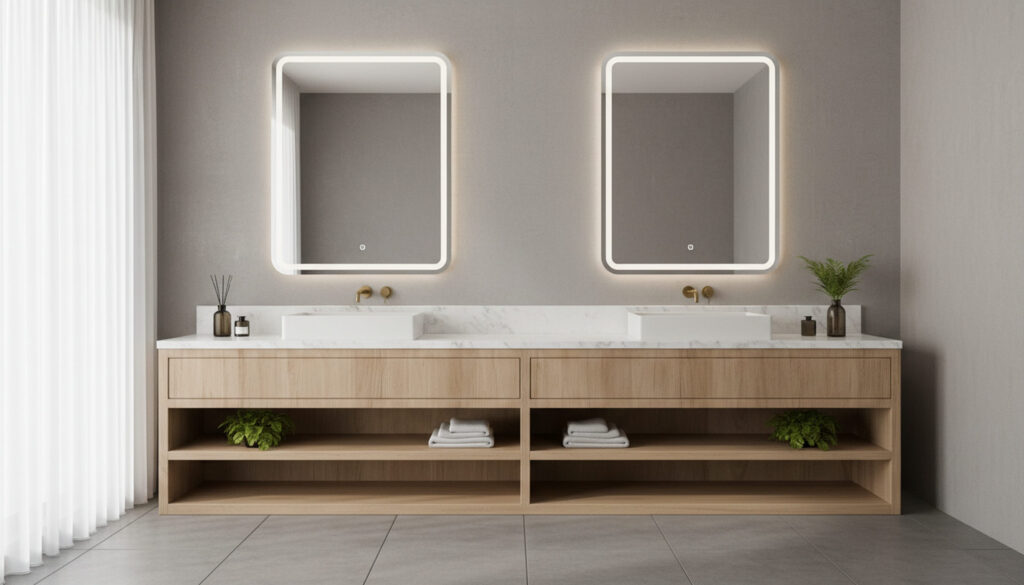 Now, if two adults use the bathroom every day, it is a different story. First, check if there is enough space for a 60-inch or larger vanity without blocking doors or limiting movement. If yes, then a double sink is usually the better choice. It makes busy mornings easier in a way that becomes clear once you start using it.